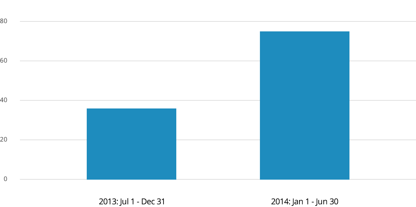 Our new intellectual property report includes data on both copyright and trademark complaints against our users. Copyright complaints are the most common. We carefully review the copyright takedown notices sent our way, and we’re proud to say that in the first half of 2014, we rejected 10% of copyright notices as abusive. “Abusive” notices are formally complete (including all of the information required by the DMCA), but are directed at fair use of content, material that isn’t copyrightable, or content the complaining party misrepresents ownership of a copyright. Some of these are highlighted in our Hall of Shame. In addition, we rejected 26% of the notice we received because they were incomplete.