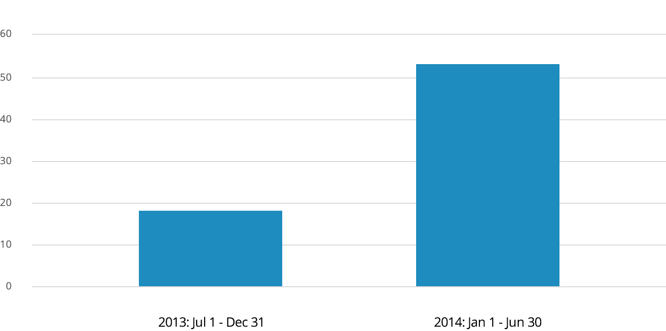 Looking at trends in our data for government information requests and takedown demands: we saw increased volume across the board. We saw a 194% increase in government takedown demands and a 108% increase in government information requests. For the 2014 reporting period, we complied with 5% of the total takedown demands we received, and 16% of the information requests.